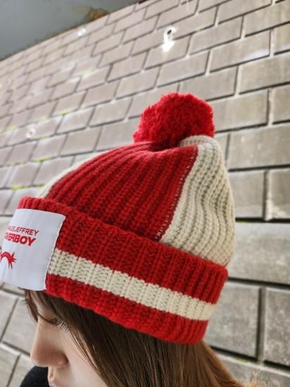 【CHARLES JEFFREY LOVERBOY】POMPOM BEANIE(RED+ECRU)